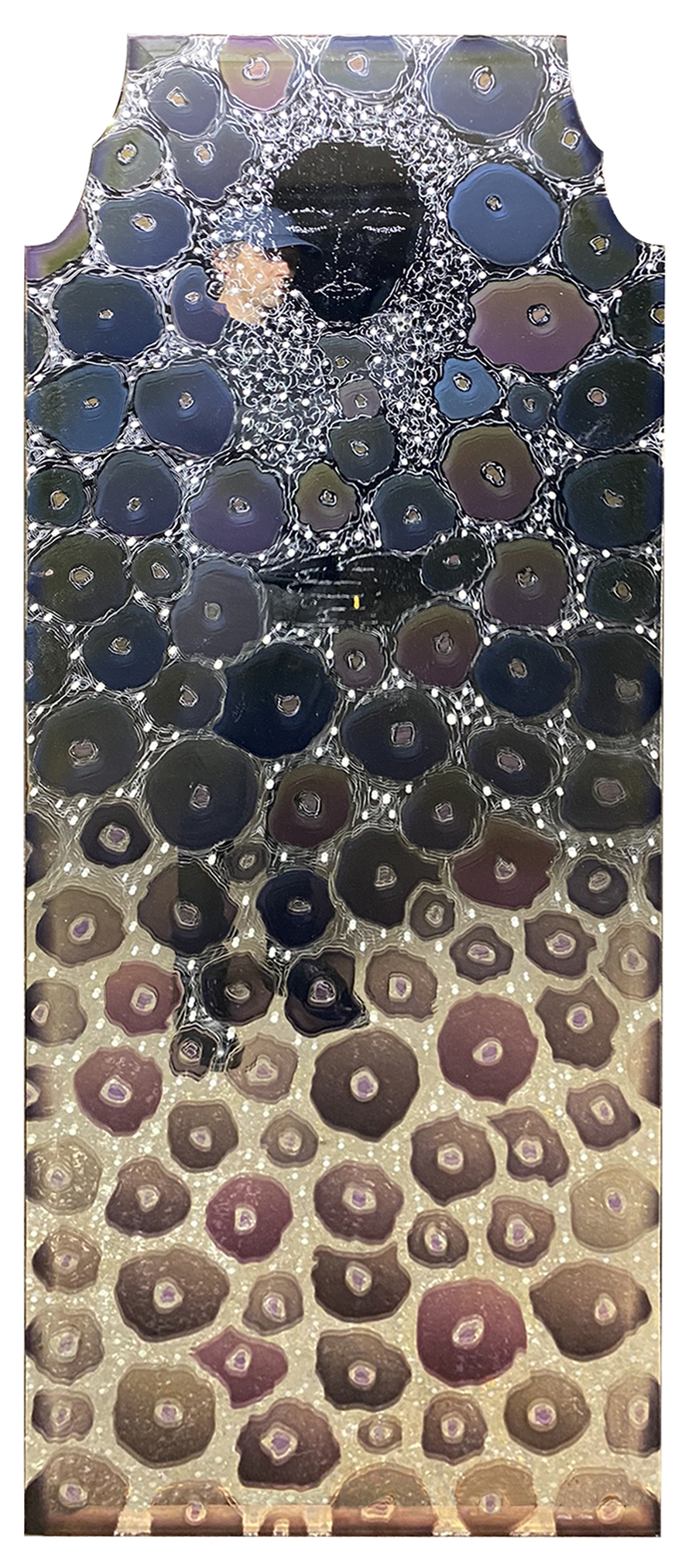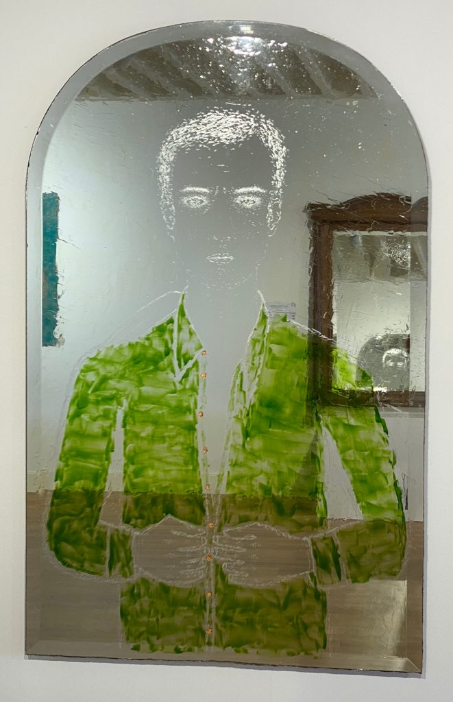 In my time-worn mirror-paintings, where the matter of the past converses with the present, the portrait is never a fixed image: it emerges from light, waits for the gaze, and becomes complete only by integrating the one who reflects in it, that threshold where mirror, face, and viewer merge into a single, living presence.