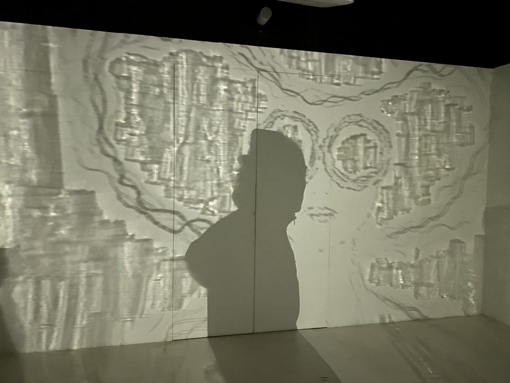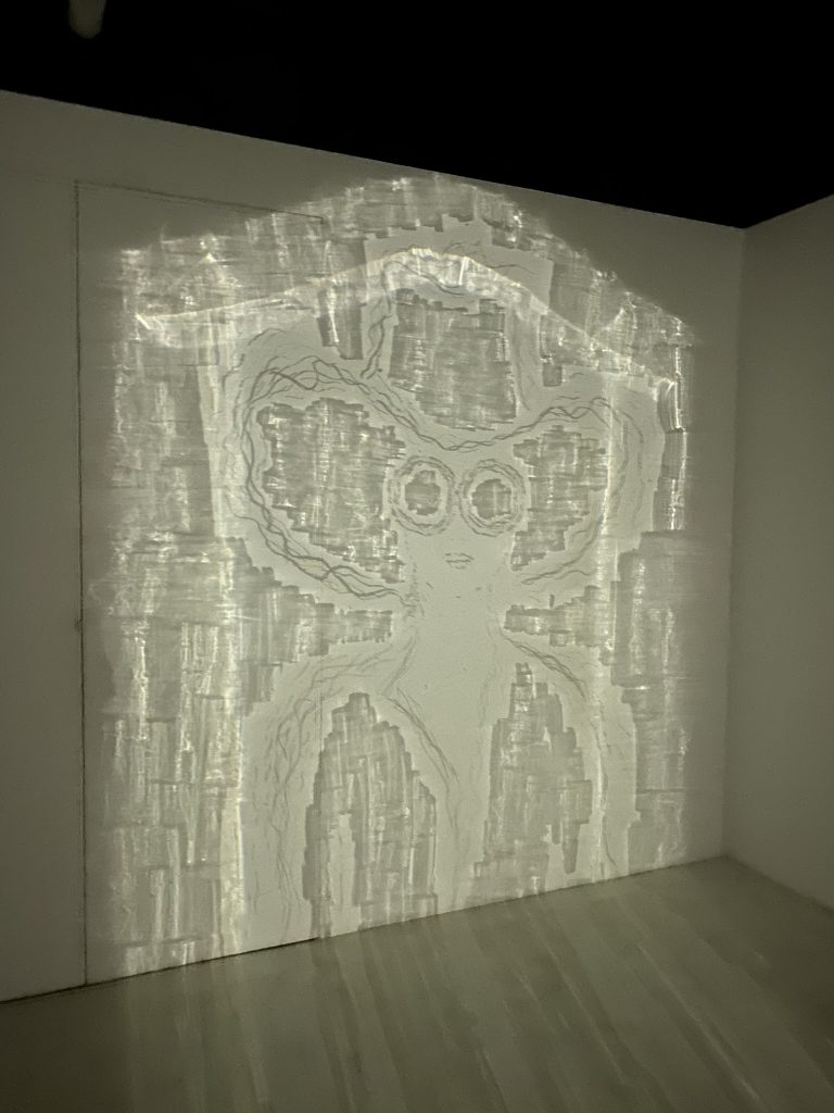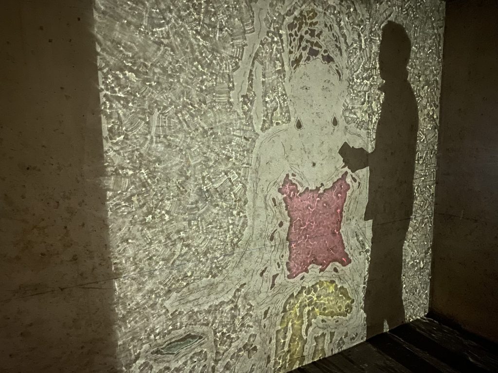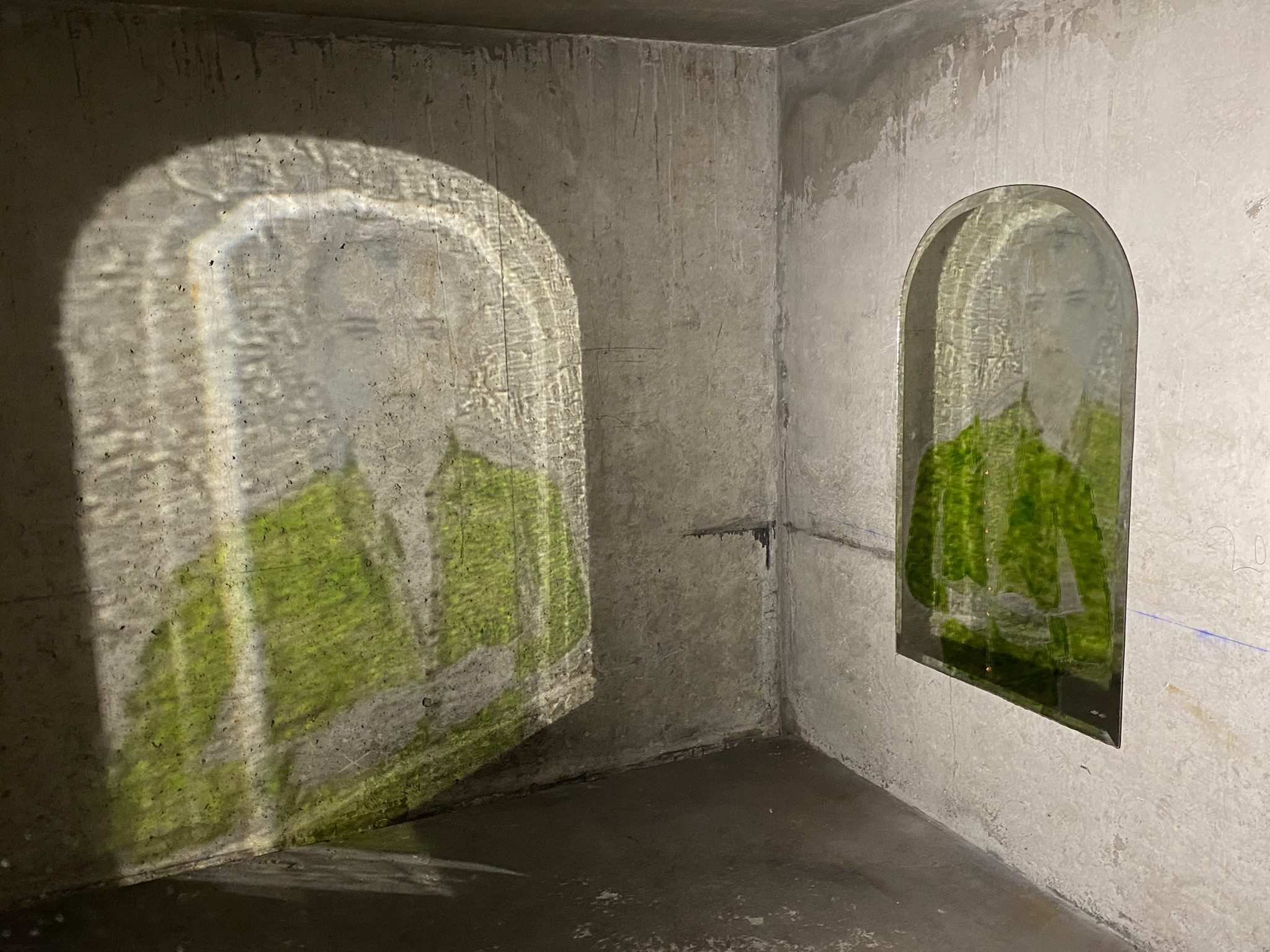 Mathieu Wolniewicz “ma mi” creates figurative images on mirrors, in which the viewer sees themselves and becomes entwined, while the image alone unfolds beyond the frame into space, creating an unstable perception and an immaterial extension through light.