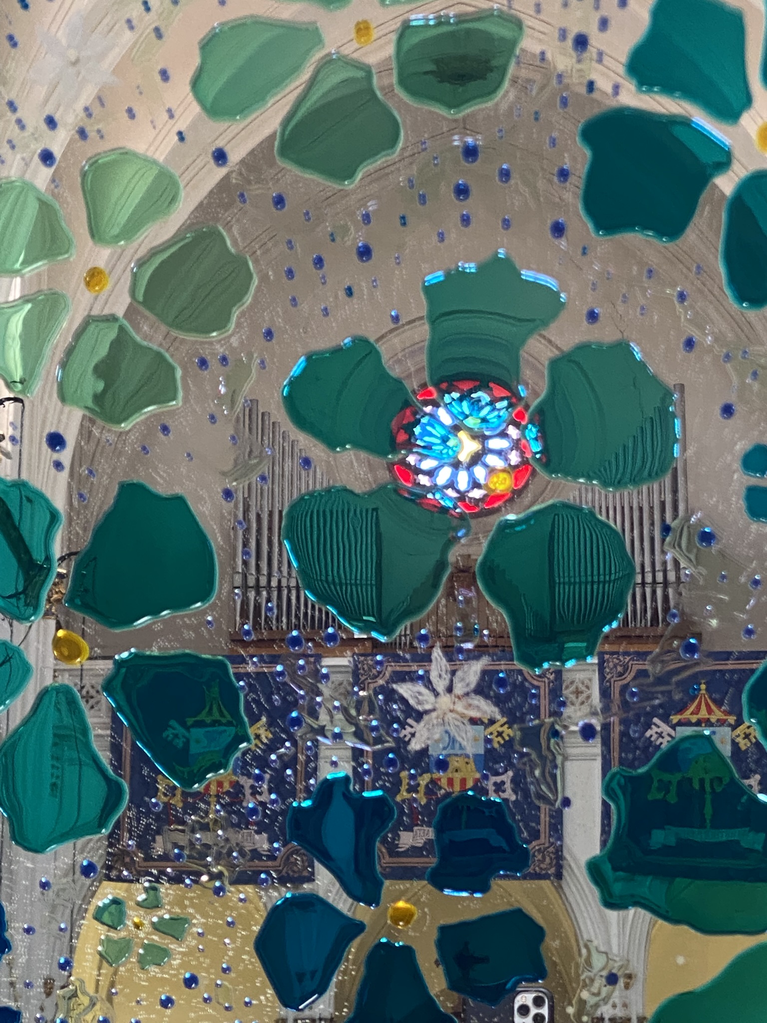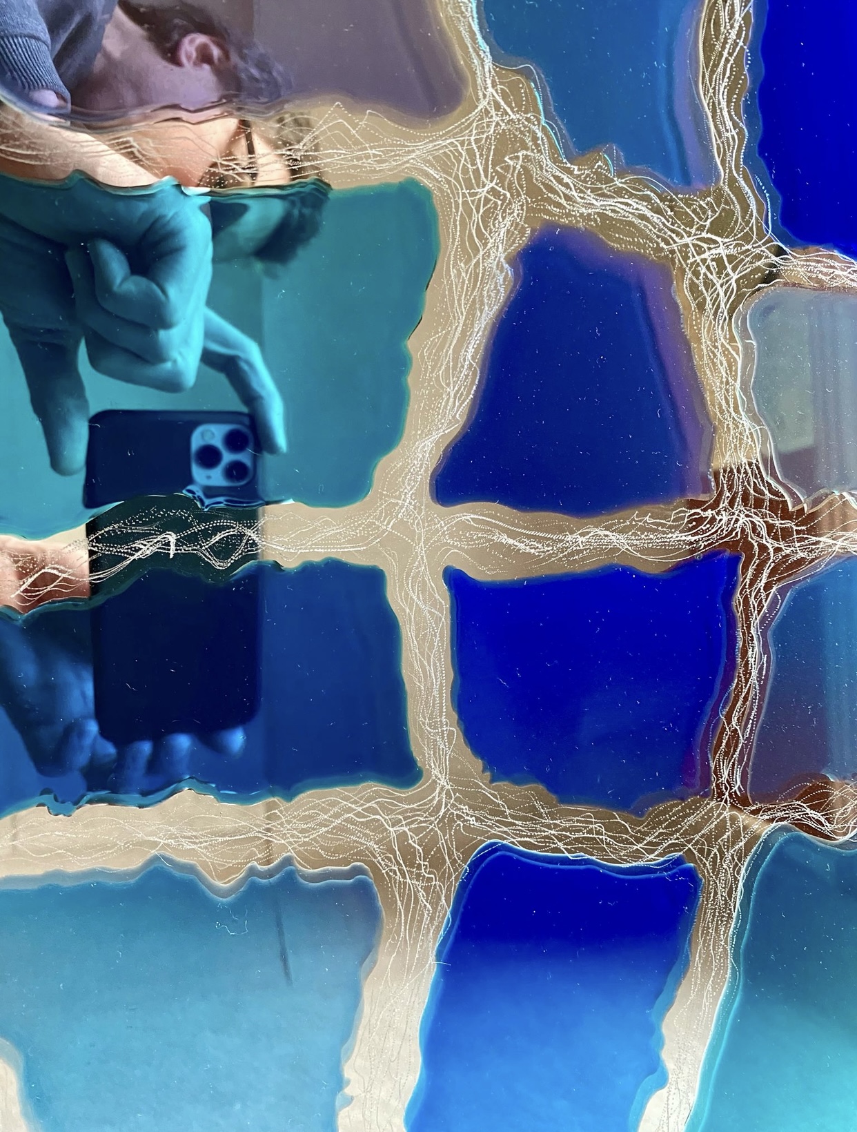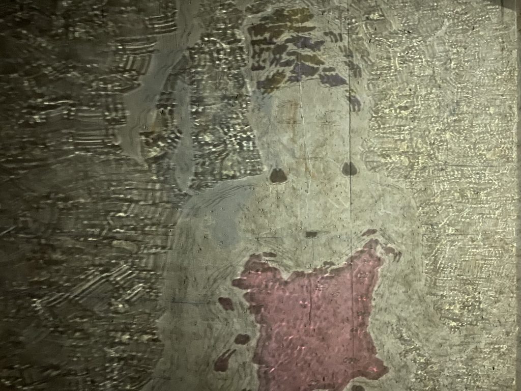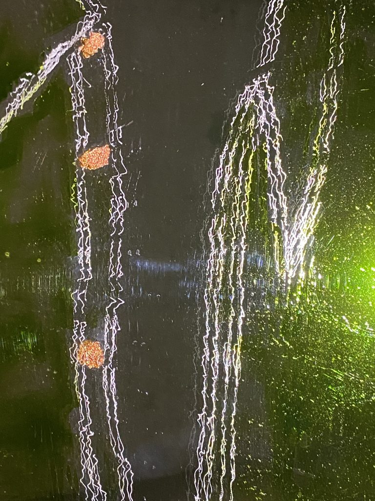 SKY VIEWS SERIES – The bottom of the pool, engraving and painting, old beveled mirror from 1886, 158 x 80,5 cm, 2025