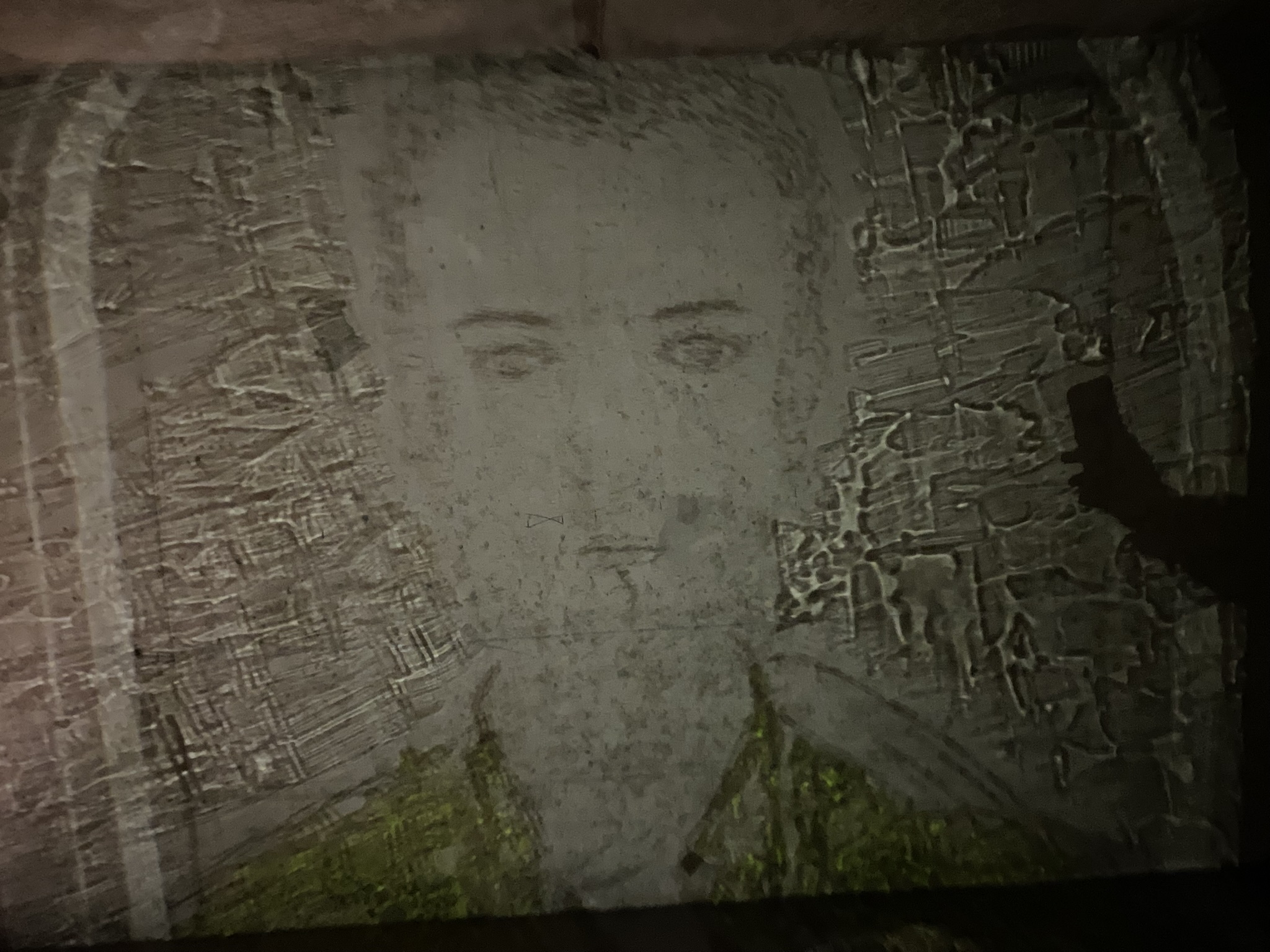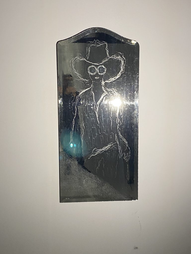 FACE-TO-FACE SERIES – Soma, engraving and painting, old beveled mirror, 132,5 x 87 cm, 2025