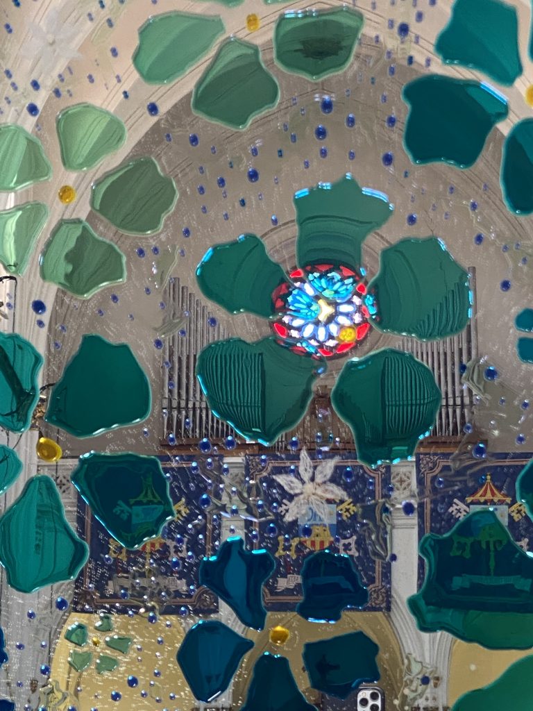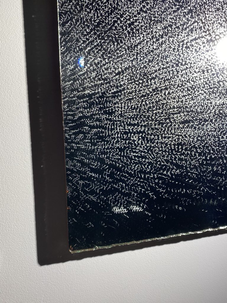 SKY VIEWS SERIES – Eternity, engraving and painting, old beloved mirror, 182 x 80 cm, 2025
